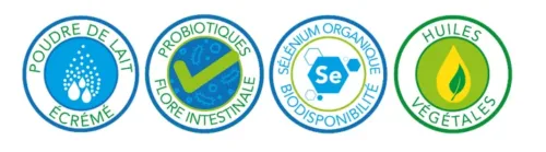 Il contient aussi des probiotiques pour soutenir la digestion et limiter les troubles, aide à lutter contre le stress, ainsi que du sélénium pour renforcer les défenses naturelles.